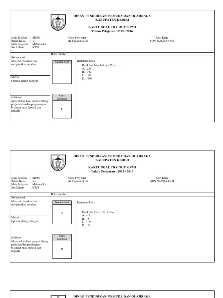 Soal Latihan Bilangan Bulat Sd Kelas 5