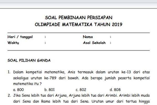 Soal Pembinaan Olimpiade Matematika Sd Level Mudah