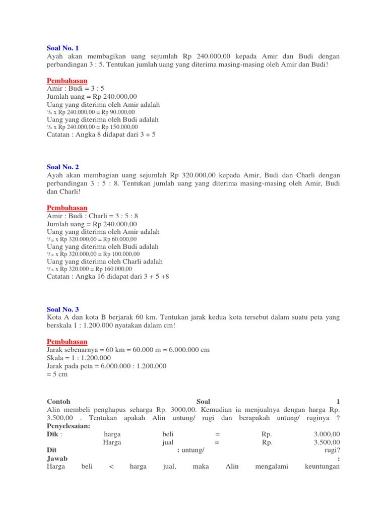 Doc Contoh Soal Dan Pembahasan Jawaban Perbandingan Dan