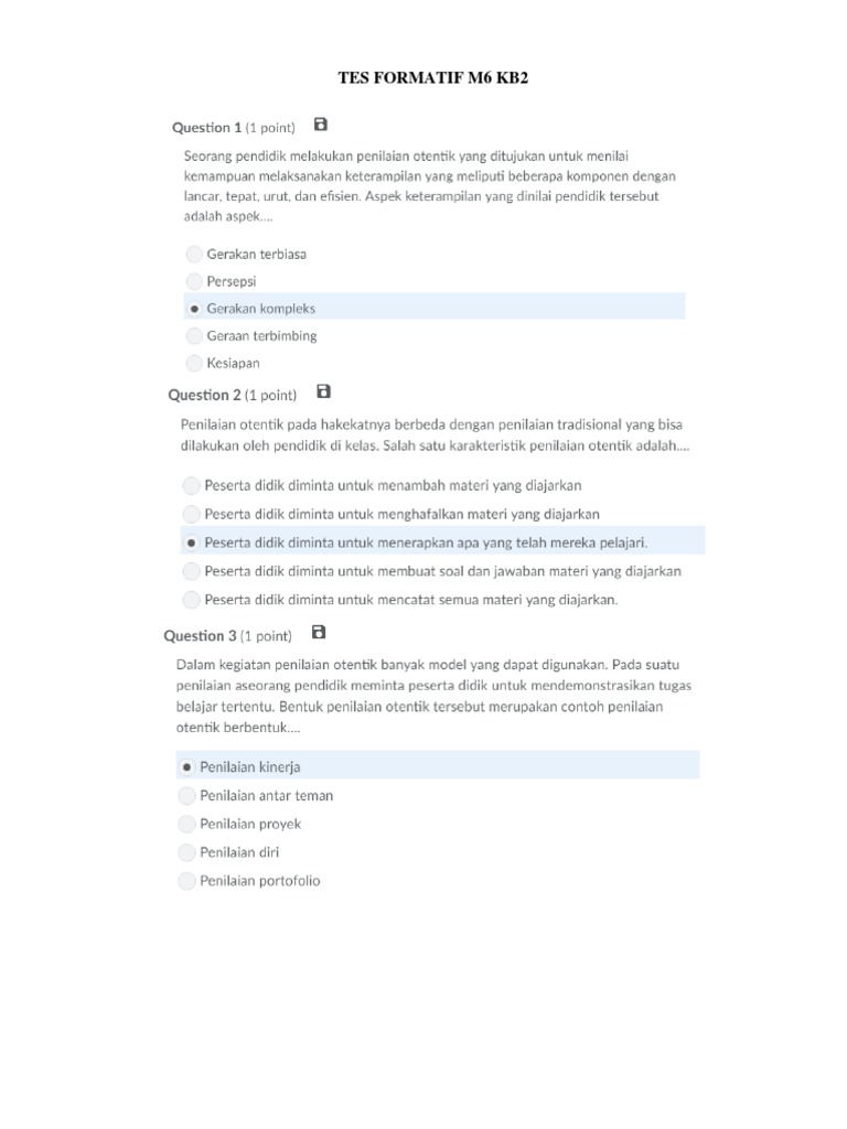 Tes Formatif M1 Kb3 Merancang Dan Menilai Pembelajaran Abas 21