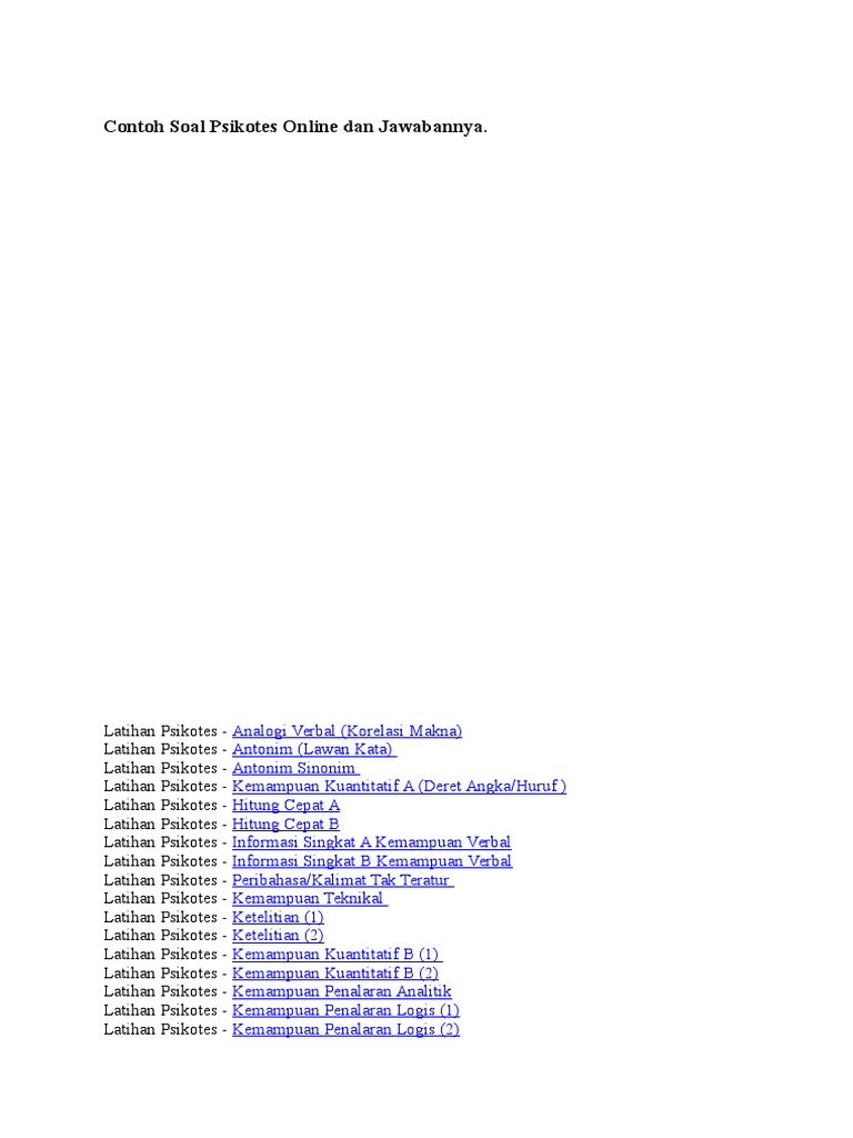 Contoh Soal Psikotes Dan Kunci Jawaban Terlengkap Dan