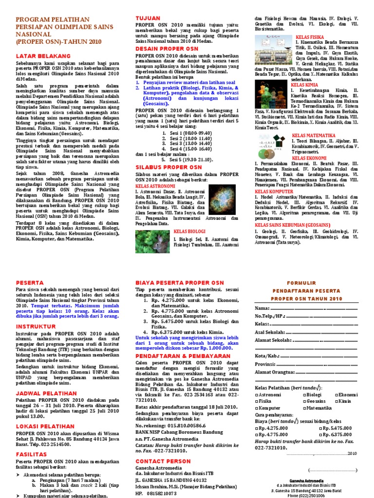 Brosur Pelatihan Persiapan Osn 2010