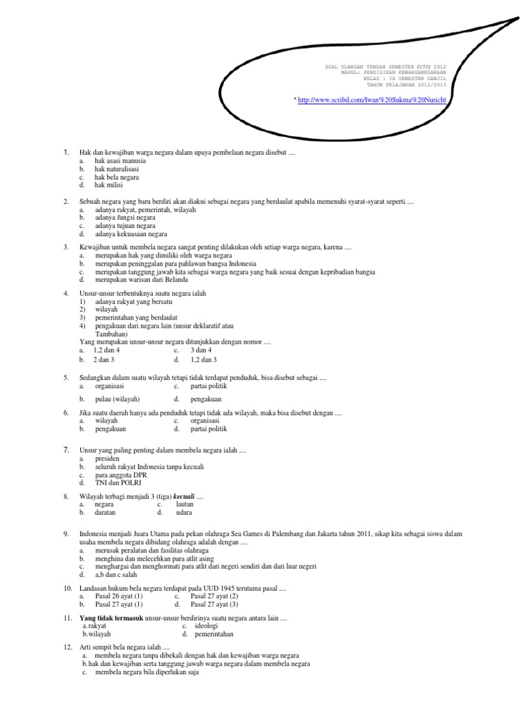 Soal Uts Pkn Smp Kelas 9 Semester 1 Ganjil Ktsp Ok Pdf