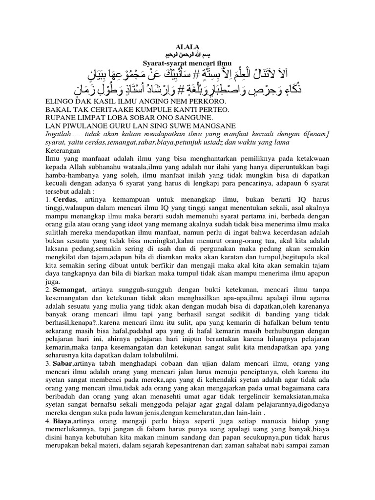 Terjemah Kitab Alala Dan Contoh Soal Kitab Alala