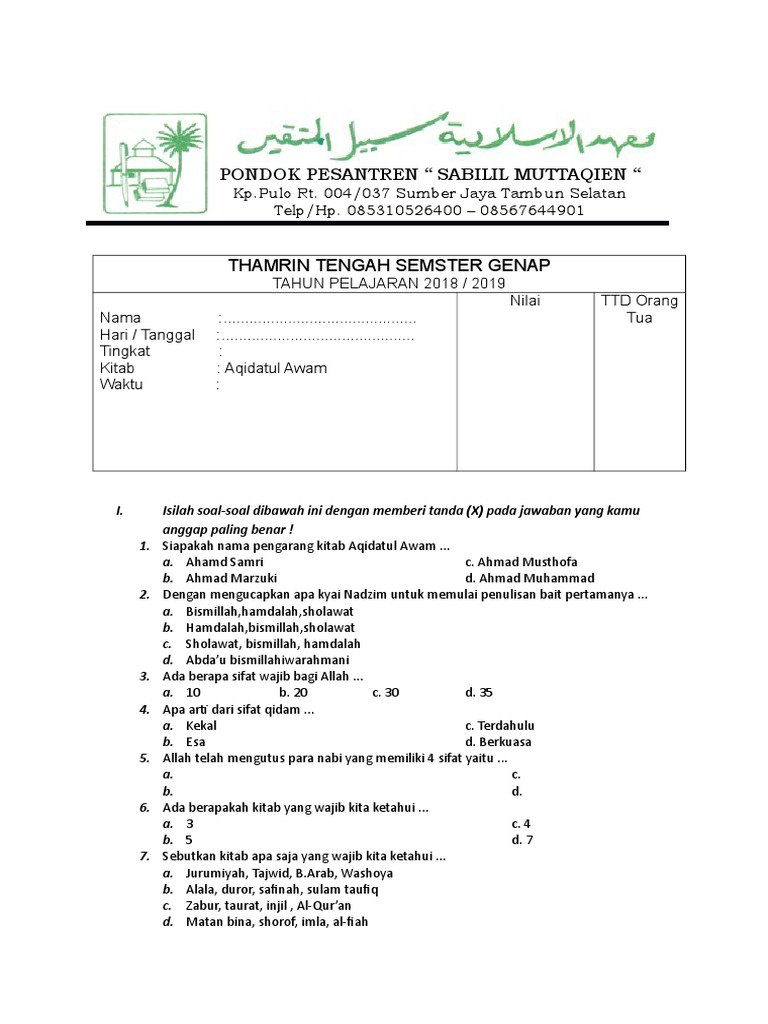 Kumpulan Soal Soal Ujian Akhir Madrasah Diniyah Tahun