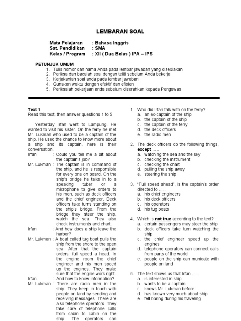 Soal Dan Pembahasan Un Bahasa Inggris Sma Ips 2012 2013