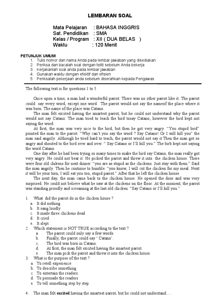 Soal Bhs Inggris Kls Xii Sma Examsworld Us Elephant