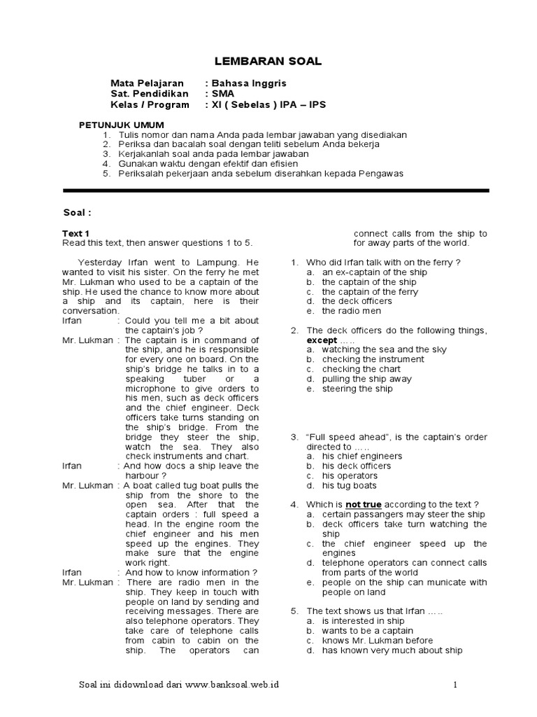 Soal Ujian Nasional Mapel Bahasa Inggris Sma Satu Web Id