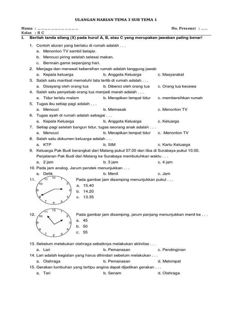 307264748 Soal Ulangan Harian Kelas 2 Tema 3 Sub Tema 1 Docx