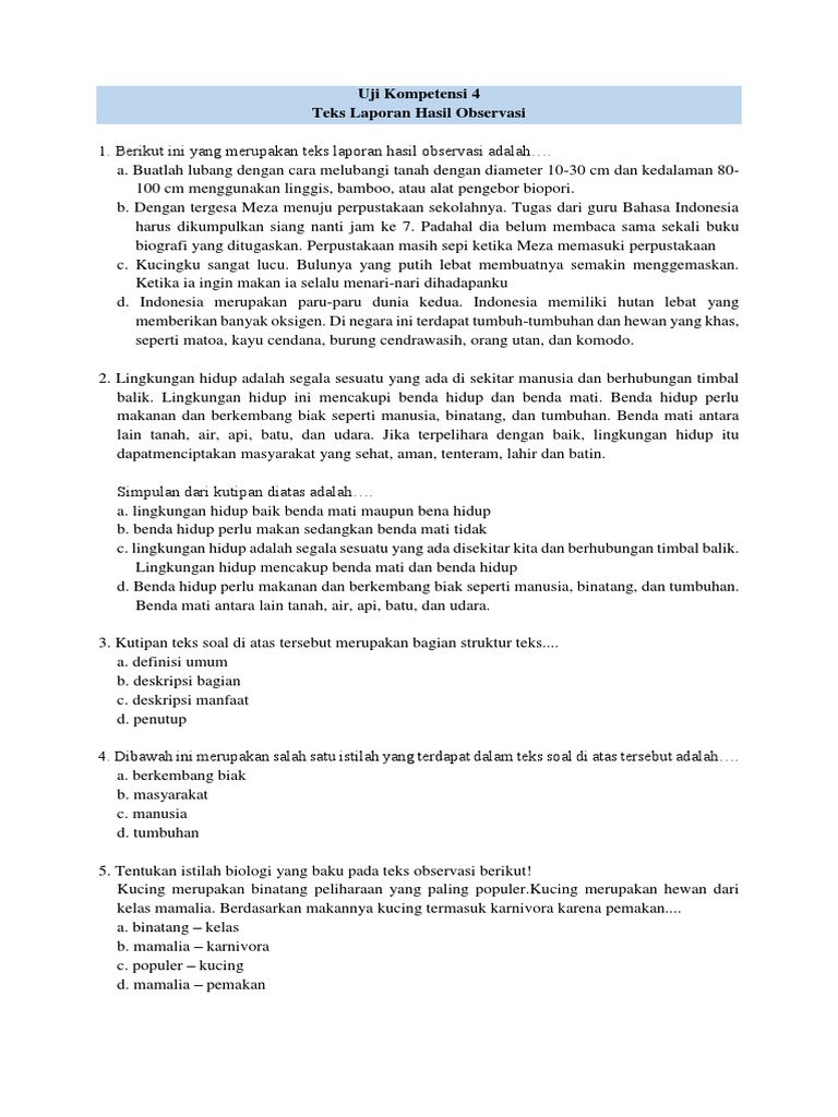 Contoh Soal Teks Laporan Hasil Observasi Kelas Vii