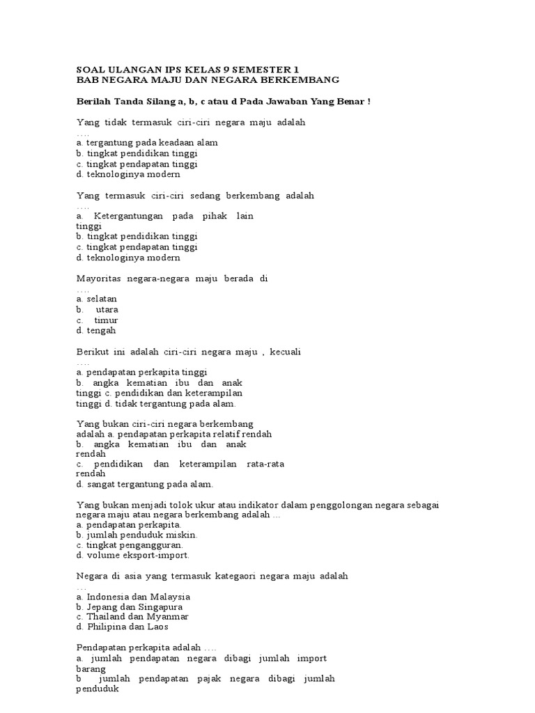 Soal Uh Ips 9 Smt 1 Negara Maju Dan Berkembang