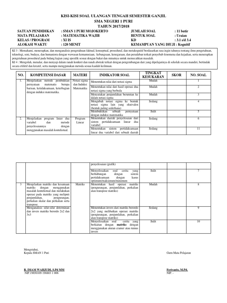 Kisi Kisi Uts Mat Wajib Semester Ganjil