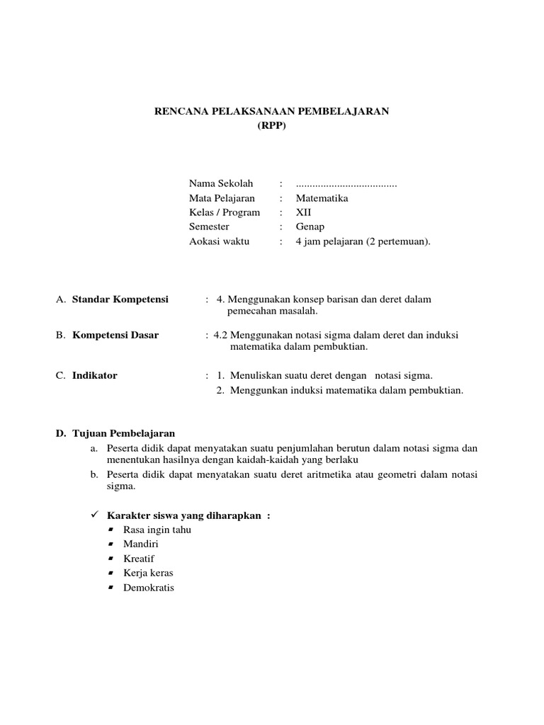 Notasi Sigma Dan Induksi Matematika Ktsp Xii