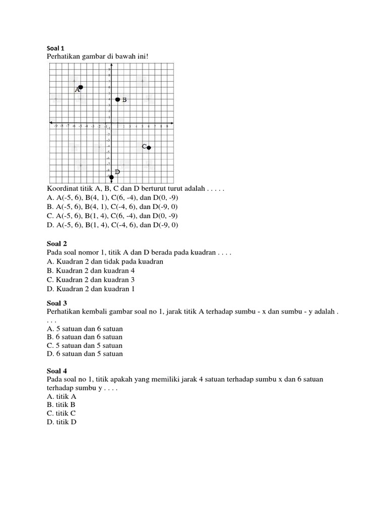Soal Matematika Sd Kelas 6 Sistem Koordinat Kartesius